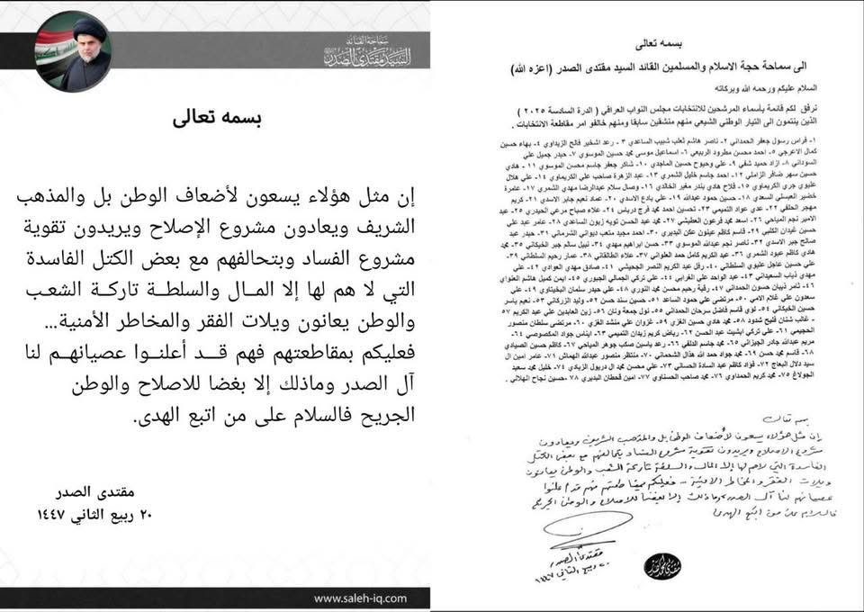 أمن العراق دولية عربية مقتدى الصدر يعرب عن قلقه من “خيانة العدو” بعد التوصل لاتفاق وقف إطلاق النار في غزة ماجد عبد نور أكتوبر 12, 2025